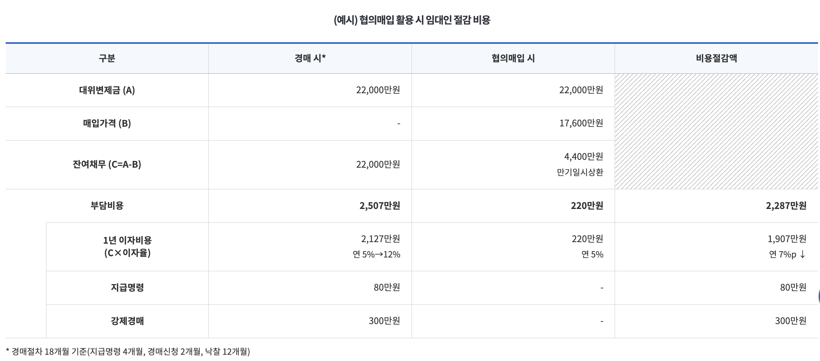 - 매매대금으로 채무를 상환하고 남은 채무는 6년간 장기간에 걸쳐 이자납부 및 만기일시상환(필요시 분할상환* 가능)