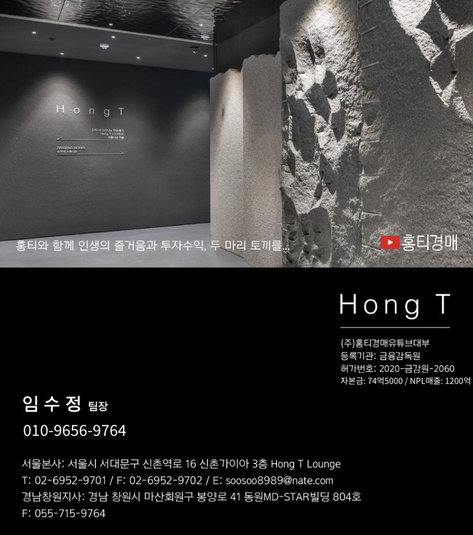 자본금 7,450,000,000원 NpL매수 50,000,000,000원 신탁NpL 할인받아 빌딩취득은 홍티경매유튜브대부와 함께.. 상담문의 02-6952-9701